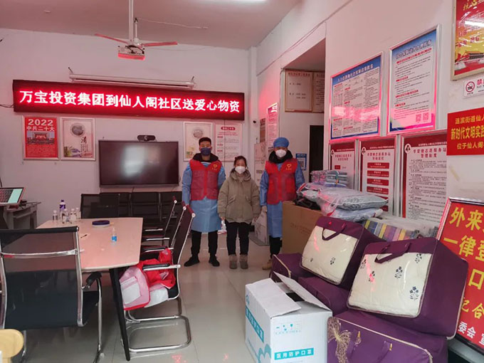 12月1日,萬寶投資集團(tuán)黨員志愿者到金色桃園小區(qū)助力疫情防控工作,與社區(qū)工作人員一同維護(hù)現(xiàn)場秩序,并向小區(qū)居民宣傳疫情防控知識(shí)。12月3日,萬寶投資集團(tuán)開展“黨員進(jìn)社區(qū)、服務(wù)在基層”活動(dòng),把N95口罩、被褥、枕頭和折疊床等一批愛心防疫物資送到仙人閣社區(qū),為社區(qū)疫情防控工作開展提供了有力的物資保障,也為在嚴(yán)寒中堅(jiān)守的一線工作人員送去了關(guān)懷和溫暖。