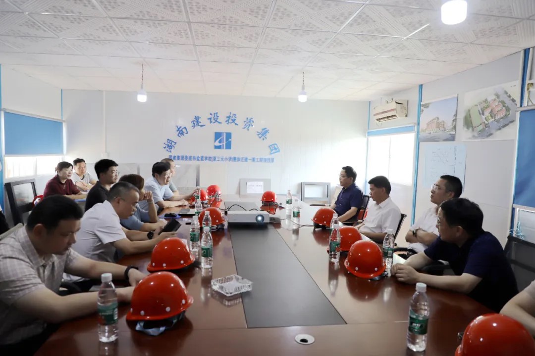 7月19日,副市長禹敏帶領(lǐng)市政府辦、市教育局、市城發(fā)控股集團(tuán)及婁星區(qū)相關(guān)負(fù)責(zé)人,來金星學(xué)校就校園項(xiàng)目建設(shè)相關(guān)工作進(jìn)行調(diào)研指導(dǎo)。萬寶投資集團(tuán)黨委副書記、總經(jīng)理徐業(yè)波陪同調(diào)研。